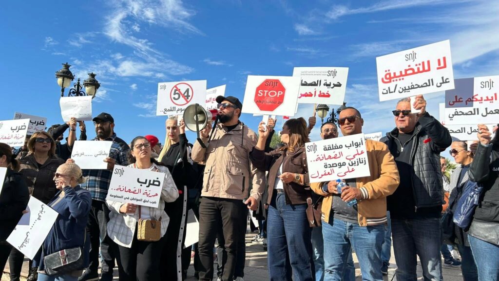 وبحسب ما جاء في بلاغ نقابة الصحفيين، فإنّ هذه التحرّكات الاحتجاجية تأتي، في ظل مناخ سياسي اتّسم بتراجع منسوب الحريات وبتزايد أشكال التضييق الإداري والقانوني على العمل الصحفي وفي سياق يتابع فيه الرأي العام بقلق بالغ مستقبل حرية التعبير والإعلام في تونس، بعد أن كانت لعقد من الزمن تُقدَّم كنموذج استثنائي في المنطقة. أزمة تتعمّق وبحسب الشعارات التي رفعها الصحفيون، فإن الوقفة الاحتجاجية لم تكن حدثا معزولا أو مفاجئا، بل امتدادا لمسار طويل من حالة التّوتّر بين الصحفيين والسلطات خلال الأشهر الأخيرة. فقد عبّر الصحفيون في مناسبات عديدة عن انشغالهم بتطبيق المرسوم عدد 54 وما نتج عنه من إحالات قضائية، وارتفاع منسوب الرقابة غير المعلنة، ما خلق شعورا عاما بأن قطاع الإعلام يتعرّض لعملية “إفراغ ممنهجة” من قبل السلطات.