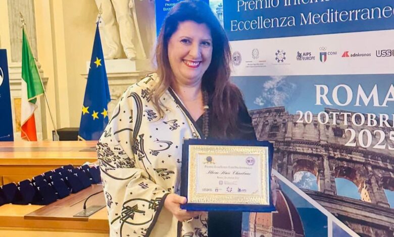 تمّ يوم 20 أكتوبر الجاري تكريم الفنانة التشكيلية التونسية إلهام سباعي شعبان خلال الحفل السنوي لتسليم “الجوائز الدولية للتميّز في الفضاء المتوسطي لسنة 2025″، الذي نظمته جمعية الصحافيين المتوسطيين بمقر وزارة الثقافة الإيطالية بروما، تحت رعاية وزارتي الثقافة والشؤون الخارجية الإيطاليتين.