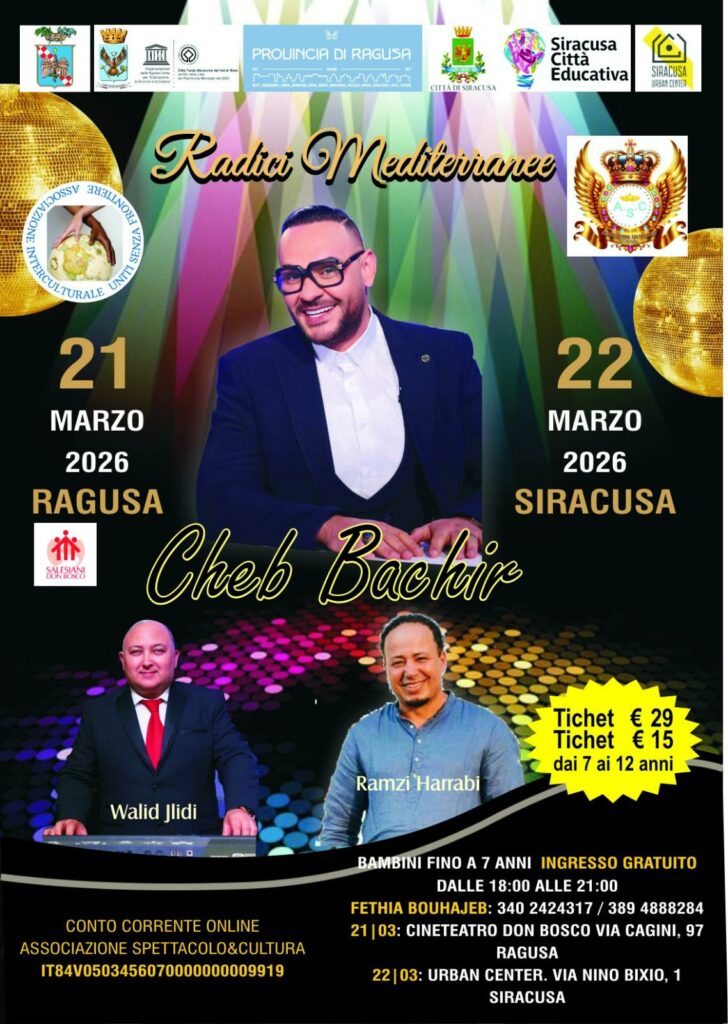 وستقام السهرتان يومي 21 و22 مارس بكل من مدينتي Ragusa و Syracuse، حيث سيحييهما الفنان التونسي الشاب Bashir الذي سيقدم عرضاً فنياً متنوعاً يجمع بين الأغاني التونسية والإيقاعات الاحتفالية التي تعكس أجواء العيد.
