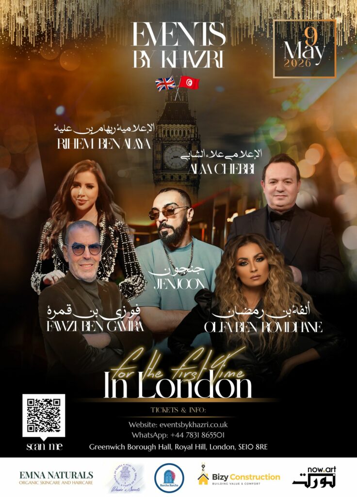 في أجواء احتفالية مميزة، تستعد العاصمة البريطانية لندن لاحتضان حدث فني وثقافي بارز يجمع نخبة من الأسماء التونسية المعروفة في مجالات الإعلام والفن، وذلك يوم 9 ماي 2026، في أمسية تحمل عنوان “Let’s be the first time in London”، بتنظيم من “Events by Khazri”.